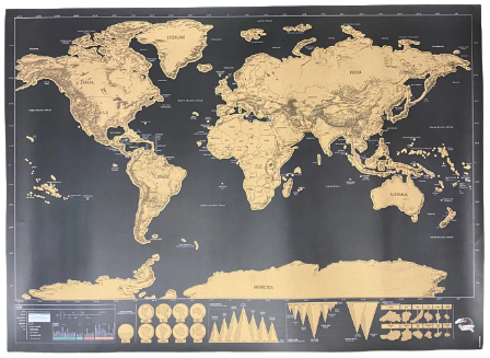Скретч-карта - отличный подарок для тех, кто любит путешествовать. На карту нанесен золотистый стирающийся слой. После посещения очередного города, достаточно взять монетку и стереть то место, где вы побывали.