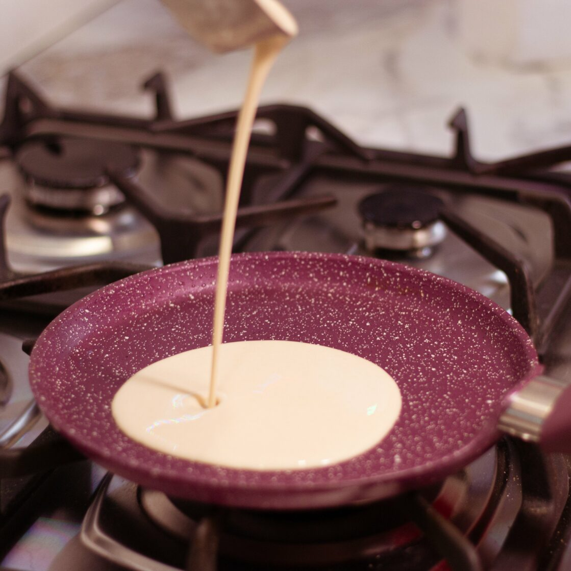 При этом такая сковородка достаточно легкая для того, чтобы переворачивать блин. Антипригарное покрытие позволяет готовить без масла или с его минимальным количеством.